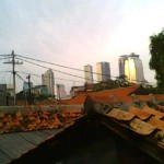 Pojokan jalan raya sudirman dan thamrin, di selimuti asap tebal kenalpot kenalpot bus kota dan kendaraan lainnya.